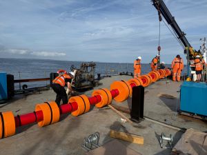 As one green energy Demonstrator finishes its summer monitoring at Falmouth Harbour’s test site for offshore renewables another model – a pioneering, dynamic cable protection system – has also been deployed at FaBTest.