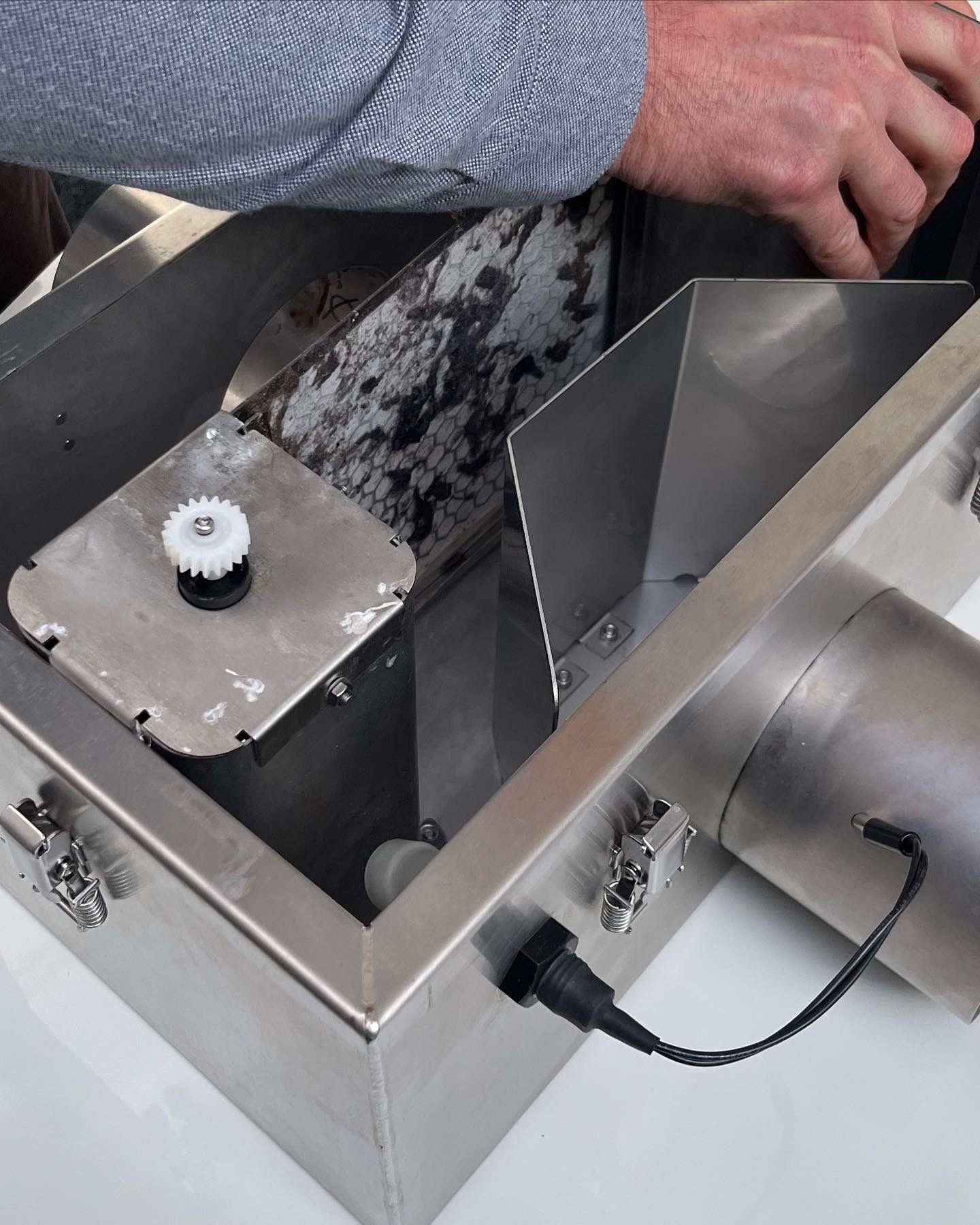 Two months of plastic microfibres collected on a Cleaner Seas INDIKON filter instead of washing out of clothes and into the sea. Photo – Cleaner Seas Group